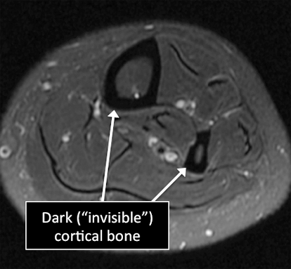 - In the bone, as in many other tissues of the body there are certain structures that can’t be seen (they look black or dark) with the standard MRI.