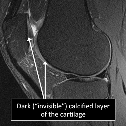 - In the cartilage, as in many other tissues of the body there are certain structures that can’t be seen (they look black or dark) with the standard MRI.