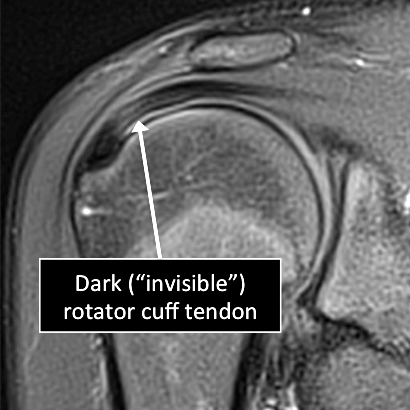 - In the shoulder, as in many other parts of the body there are certain structures that can’t be seen (they look black or dark) with the standard MRI.